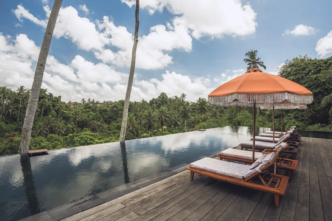 Overlooking the lush jungle and sacred river valley, the infinity pool at Kaamala is a tranquil escape where water meets sky. Guests can unwind in total serenity while soaking in panoramic views that reflect the timeless beauty of Ubud’s greenery.