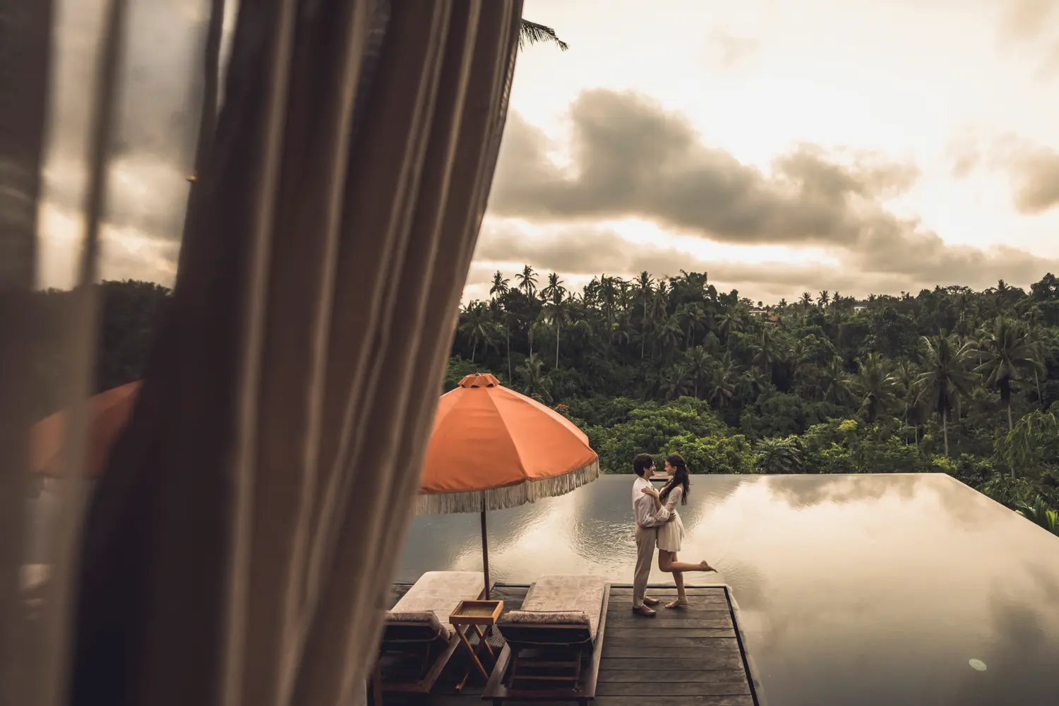 As the sun gently descends, the air is filled with a lingering romance, perfect for quiet reflection or tender connection. Here, sunsets are not just seen, they are felt, a rare spectacle of love and beauty in the heart of Ubud